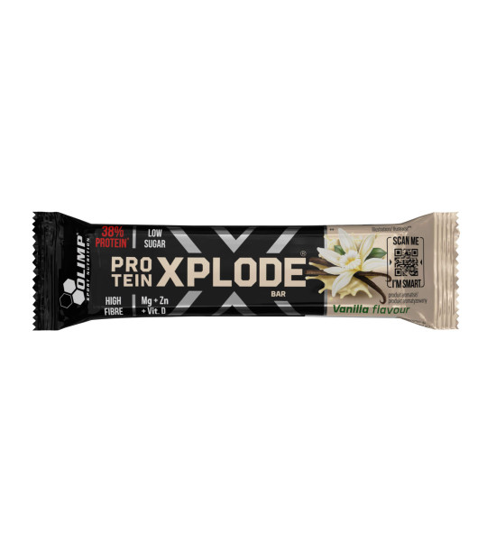 Olimp Protein Xplode Bar – супер смачний протеїновий батончик в справжній шоколадній глазурі. Вирізняється високим вмістом білка та низьким вмістом цукру. Збагачений вітаміном D, магнієм та цинком у добрезасвоюваній хелатній формі. Цінний, смачний та корисний перекус протягом дня, після тренування або під час подорожі.