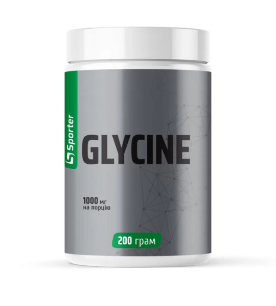 Sporter Glycine – спортивна харчова добавка у формі порошку. Містить чистий гліцин високого рівня якості. Оптимальний варіант для спортсменів та фізично активних людей, чиї організми мають посилену потребу в амінокислотах.