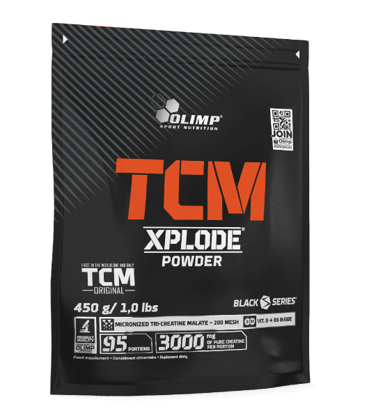 Olimp TCM Xplode Power – спортивна харчова добавка у формі порошку. Містить високомікронізований трикреатин малат. Доповнена вітамінами D3, B6 і натрієм. Ідеальний продукт для фізично активних дорослих і спортсменів, які виконують високоінтенсивні фізичні вправи.