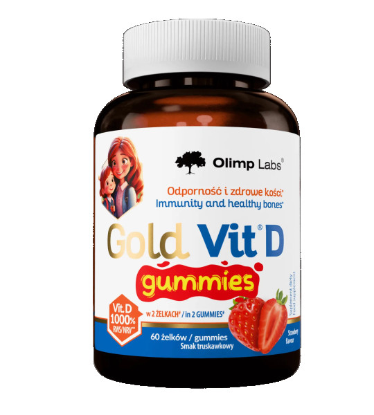 Olimp Gold Vit D – високоякісна вітамінна добавка в жувальних цукерках з приємним полуничним смаком. Містить високоефективний вітамін D3. Розроблена із врахуванням потреб дитячого організму. Чудовий вибір для батьків, які шукають прості та ефективні рішення без зайвих ускладнень.