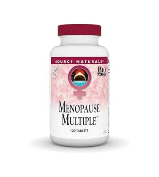 Source Naturals Menopause Multiple – комплексна харчова добавка в таблетках. Містить високоефективну комбінацію вітамінів, мінералів, фітонутрієнтів та рослинних інгредієнтів, включно з геністеїном, клопогоном і вітексом, в таблетках. Розроблена відповідно до потреб зрілого жіночого організму.