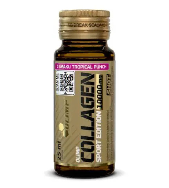 Olimp Collagen Shot Sport Edition – харчова добавка в порційних скляних шотах. Базується на високоякісному бичачому колагені. Доповнена вітаміном С, а також цинком і марганцем у добрезасвоюваних формах хелатів амінокислот Albion™. Чудово доповнить раціон фізично активно людей.