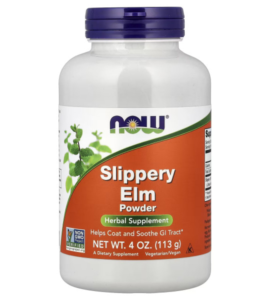 NOW Slippery Elm Powder – харчова добавка у формі порошку. Базується на високоефективній корі червоного в’яза. Багате природне джерело цінних сполук. Розроблена для тих, чий шлунково-кишковий тракт потребує додаткової підтримки.