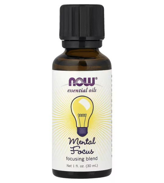 NOW Mental Focus Oil Blend – суміш високоякісних ефірних олій. Має приємний м'ятно-цитрусовий аромат. Підтримує концентрацію і фокус. Може використовуватись в ароматерапії.