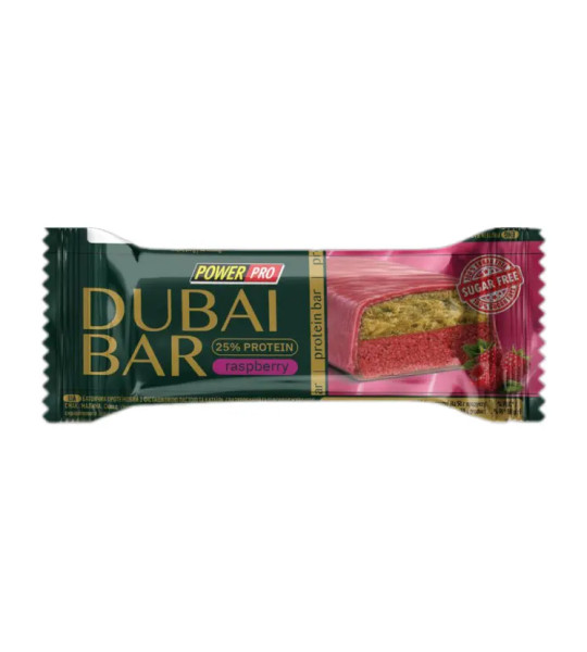 Power Pro 25% Dubai bar Sugar Free – смачний хрусткий батончик з особливим поєднанням ніжної фісташкової пасти та хрусткого тіста катаїфі. Містить 25% протеїну. Не має в складі доданого цукру.