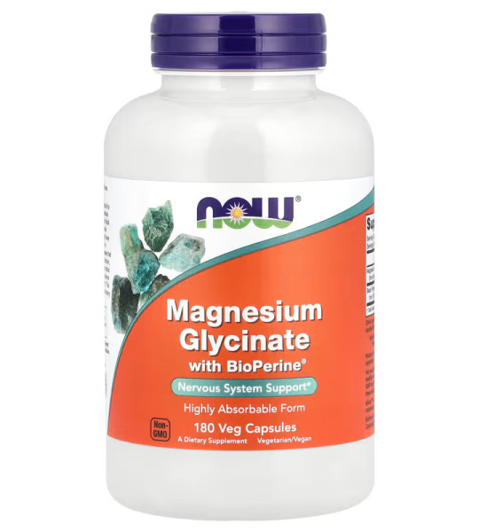 Опис NOW Magnesium Glycinate with BioPerine Veg Caps (180 капс)