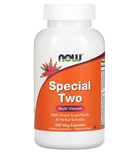 NOW Special Two Multivitamin Veg Caps – потужний мультивітамінний комплекс в рослинних капсулах. Містить збалансовані співвідношення основних вітамінів та мінералів. Збагачений зеленими суперфудами й рослинними екстрактами.